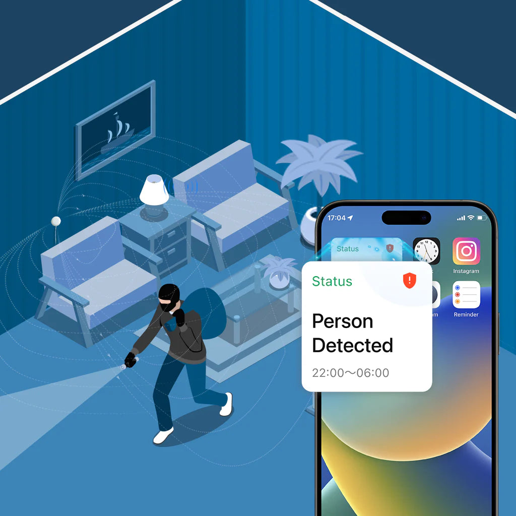 - 60 GHz mmWave detecteert ook statische aanwezigheid (ademhaling, hartslag)