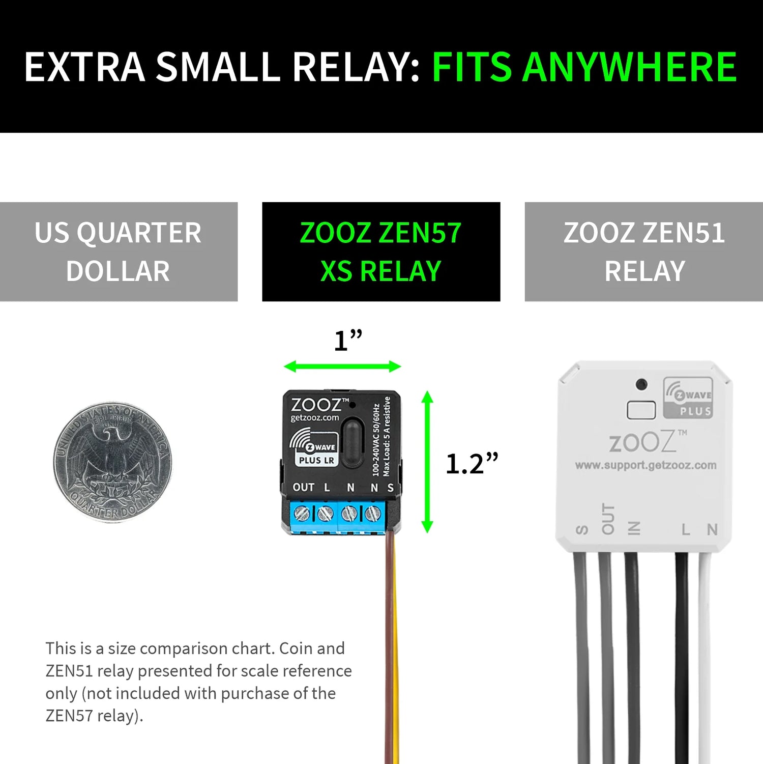 De Zooz XS Relay ZEN57 800 EU is een ultracompact Z-Wave 800 schakelrelais (30 x 25 x 15 mm) voor 100-240V systemen. Met Z-Wave Long Range tot 400 meter en 5A belasting perfect voor krappe inbouwdozen.