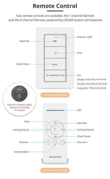 Zemismart ZMT6 | 6-Kanaals RF Afstandsbediening voor Rolgordijnmotoren