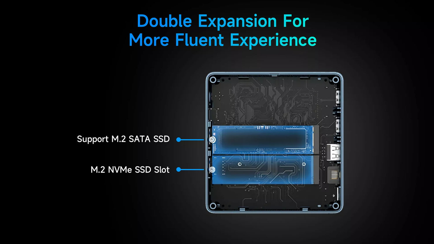• USB 2.0 voor Zigbee: de 2× USB 2.0-poorten zijn ideaal voor Zigbee-dongles zoals de Home Assistant Connect ZBT-2, omdat USB 2.0 geen RF-interferentie veroorzaakt in het 2,4 GHz Zigbee-signaal (een bekend probleem bij USB 3.0).