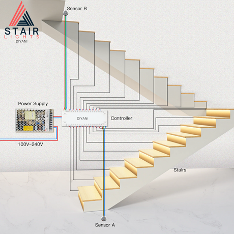Dynamische Treppenbeleuchtung DIY Set | 100 cm breit | bis zu 16 Stufen