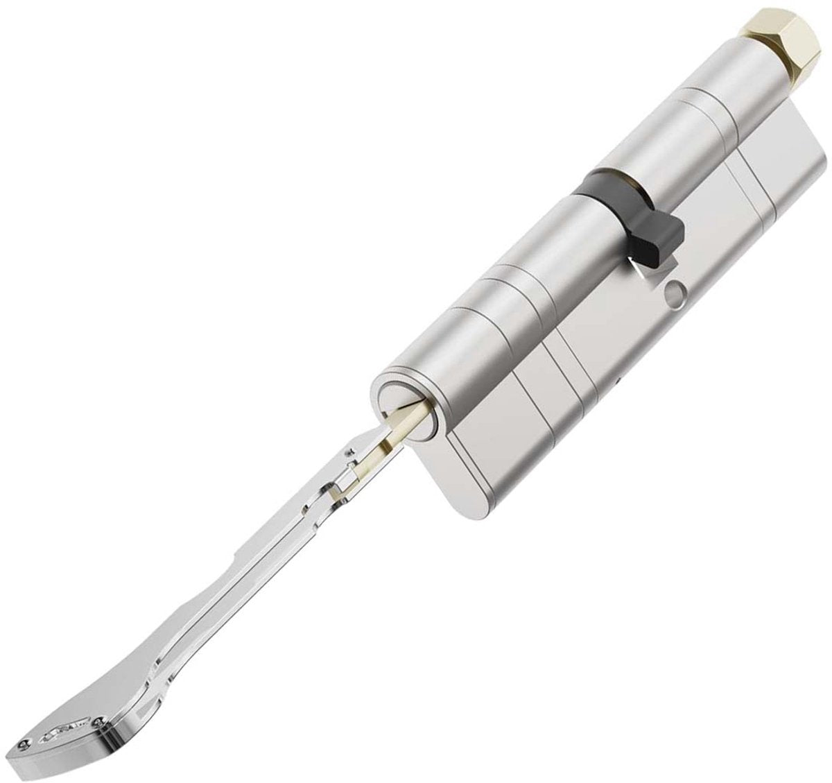 Wat deze cilinder uniek maakt, is de ingebouwde noodfunctie: zelfs als er aan de binnenkant een sleutel in het slot zit (zoals bij de U200 Smart Lock het geval is), kun je de deur van buitenaf gewoon openen met een sleutel. Dit voorkomt dat je jezelf buitensluit – ideaal voor gezinnen en huurwoningen.