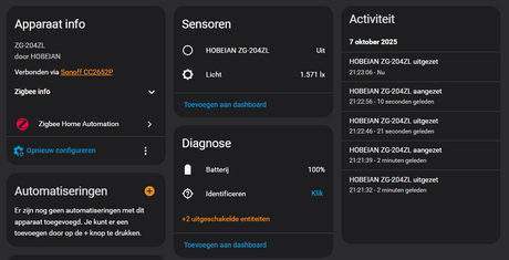 Zigbee MINI Bewegingsmelder met Lichtsensor – ZHA & Zigbee2MQTT compatible