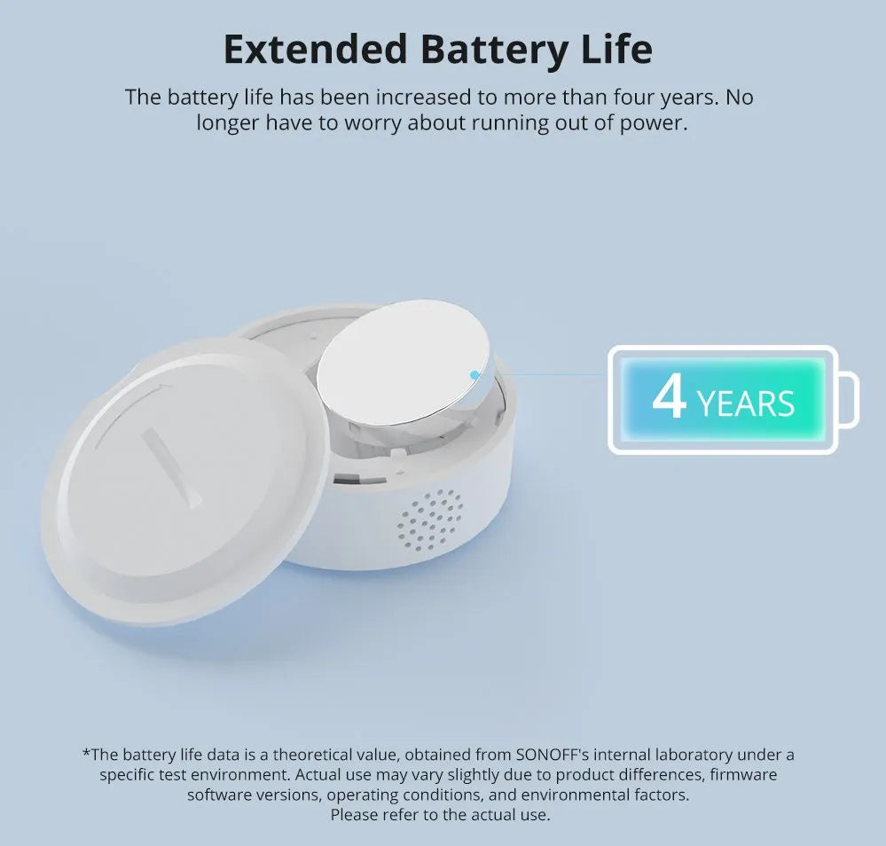 | Battery life | > 4 years (theoretical, internal SONOFF lab test; actual duration depends on usage) |