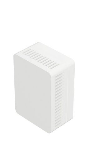 Bedoeld voor binnenshuis gebruik in standaard woon- en werkruimtes. De BME688 functioneert elektrisch tussen -40°C en +85°C, met volledige nauwkeurigheid tussen 0°C en 65°C bij 10-90% relatieve luchtvochtigheid. De SCD40 (optioneel) werkt optimaal bij kamertemperatuur en normale luchtvochtigheid. De behuizing is ontworpen voor maximale luchtstroom om sensornauwkeurigheid te behouden en de levensduur van componenten te verlengen. Niet geschikt voor vochtige of stoffige omgevingen zoals badkamers of werkplaatsen zonder extra bescherming. De resin-behuizing is duurzaam en hittebestendig. De BME688 voldoet aan Europese veiligheidsnormen.